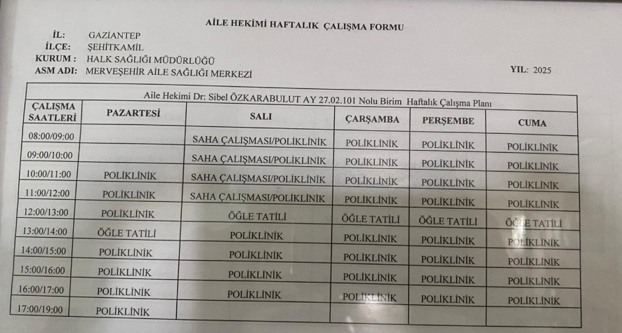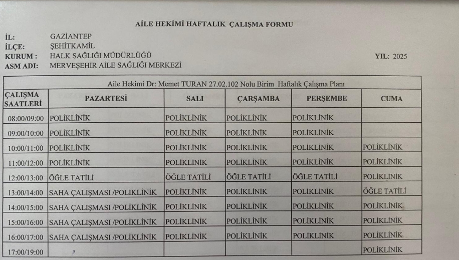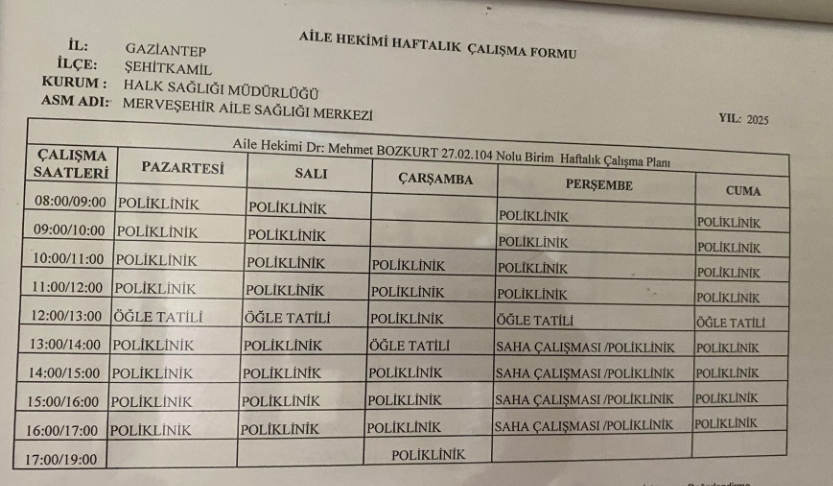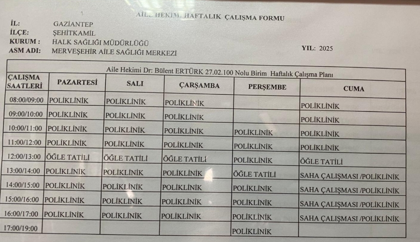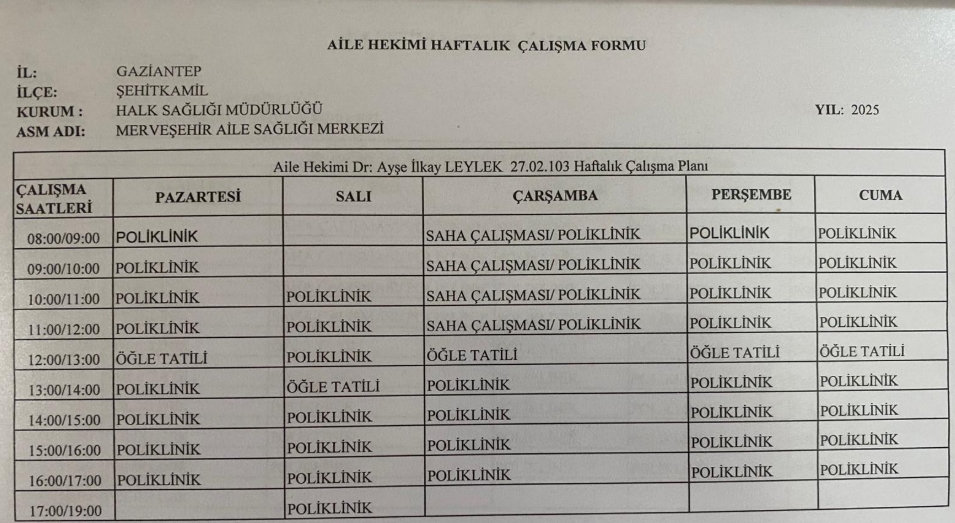 Hekimlerimizin Çalışma Saatleri İçin
