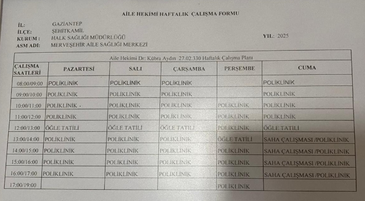 Aile Sağlığı Merkezimizde Görev Yapan Aile Hekimlerimizin Listesi İçin